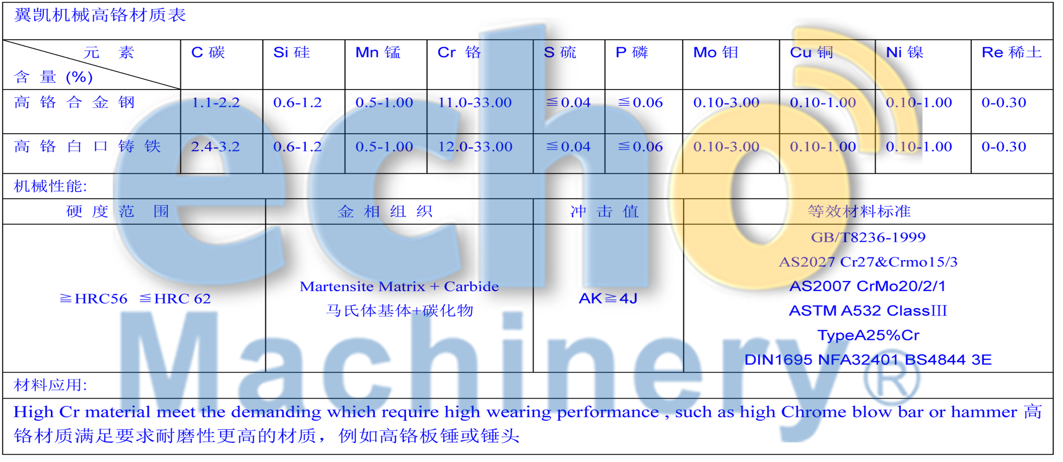 高鉻材質就是含2.0% -3.6%碳和11%-33%鉻的鑄鋼。它以高耐磨涂層機器和具有戰略合作力的資本而著明。